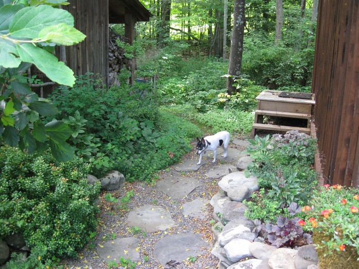 The larger question of controling deer population lies with the politicians and forest managers. At the same time, our forests and our gardens continue to be overbrowsed by deer, so a more immediate solution is needed. Our preference is exclusion. A black plastic mesh fence is fairly effective if maintained, and not realtively expensive, but is also not as durable or long lasting as a wire fence, and has the added problem of sometimes causing birds to become trapped. Black wire mesh fencing is a better solution, but can be expensive. Unlike other fences, deer fences tend to be virtually invisible to the eye, especially at a distance. We advise using using black metal or natural red-cedar posts along with black wire fencing, set to a minimum of 8 ft. height. An alternative to an 8 ft. fence, especially near the house, is two 4-ft. fences, separated by a distance of 4 ft.. Deer won't jump one fence if they can't see a clear landing on the other side, so the double fence serves as an effective deterrant, especially if the middle section is planted with shrubs and tall flowers.
